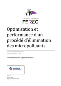 Auteurs : MERCK ALINE SOGEA ENVIRONNEMENT Rédigé à partir d’un rapport d’étude du CTE Optimisation et performance d’un procédé d’élimination des micropolluants Fondation d’entreprise FEREC Appel à projets 2023 « Infrastrastructures & gestion des eaux »
